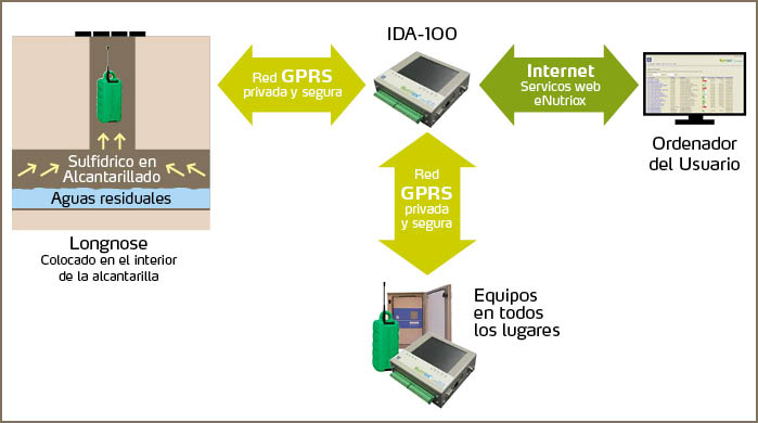 Los sensores de gas registran los niveles de H₂S en unos puntos de descarga predeterminados de la red de alcantarillado objeto del servicio y envían datos al servidor de Yara Telemetría. Yara Telemetría coordina toda la información relacionada con el programa de tratamiento de la planta afectada para comprobar su efectividad y realiza cambios en la configuración del controlador de dosificación si los resultados no son los esperados. Por ejemplo, en el caso de un exceso de H₂S, la dosificación puede aumentarse. Esta capacidad ha sido desarrollada por Yara y se usa por toda Europa.